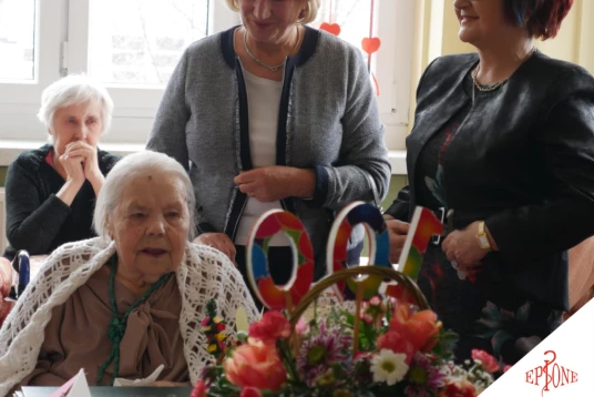 Pani Stanisława została obdarowana pięknymi bukietami kwiatów, a życzenia osobiście złożyli przedstawiciele Zakładu Ubezpieczeń Społecznych oraz władz samorządowych miasta Będzin.