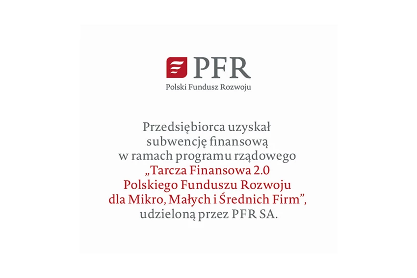Firma EPIONE Sp. z o.o. uzyskała subwencję finansową w ramach programu rządowego "Tarcza Finansowa 2.0 Polskiego Funduszu Rozwoju dla Mikro, Małych i Średnich Firm" udzieloną przez PFR SA.