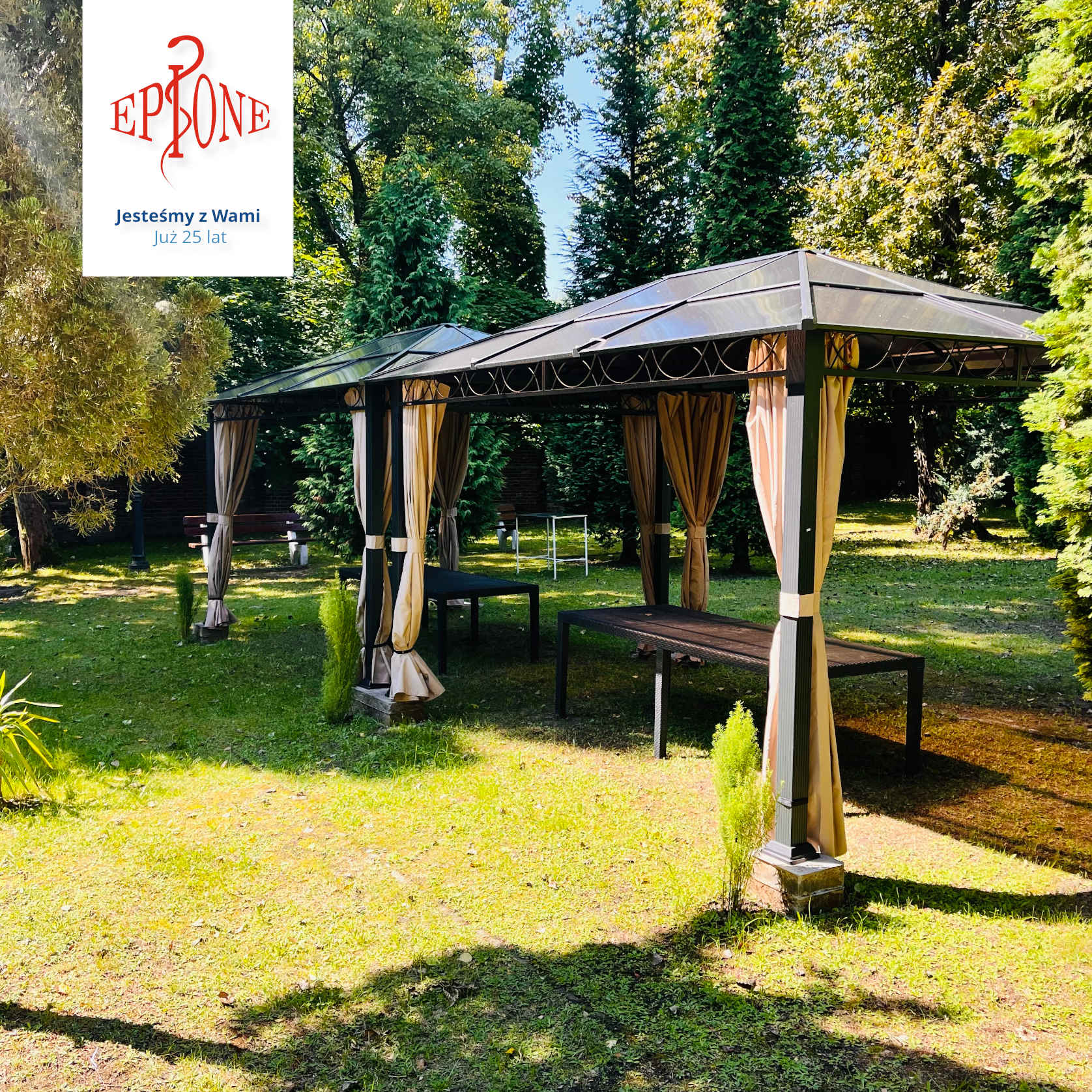 Park dla Pacjentów Zakładu Opieki Długoterminowej EPIONE został odświeżony oraz wyposażony w dwie urokliwe altany, które zapewniają pacjentom idealne miejsce do wypoczynku i obcowania z naturą.