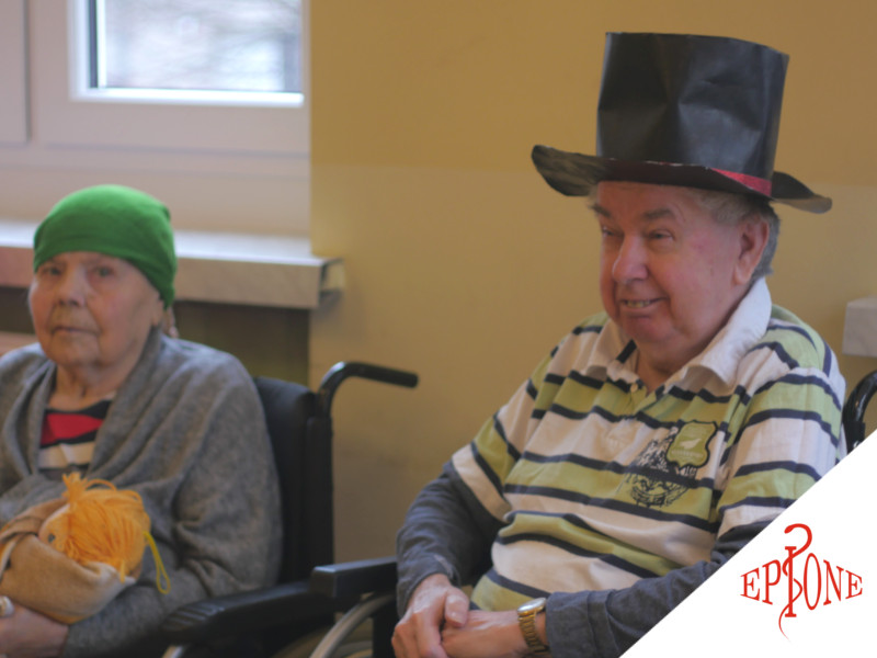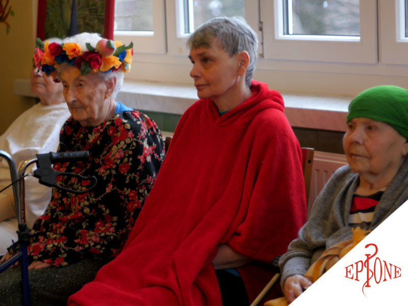 (Terapeuci Zakładu Opieki Długoterminowej aktywizują pacjentów w ramach zajęć terapeutycznych.)
